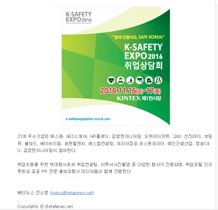 2016년 제2회 산업안전박람회 우수기업TOP20 선정